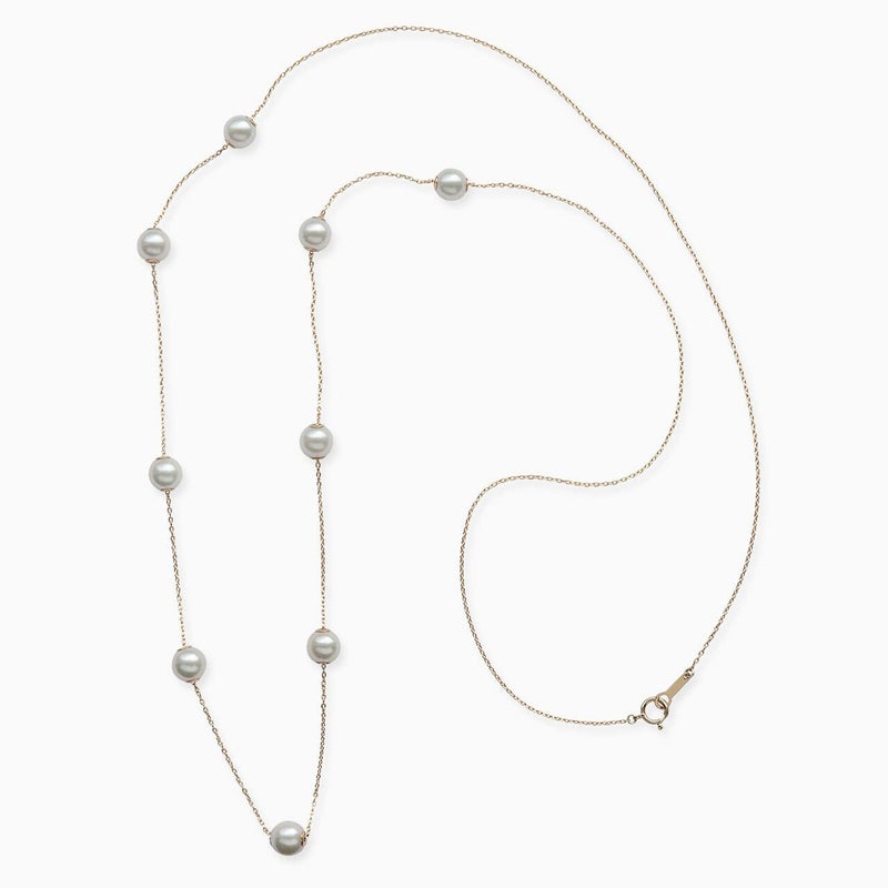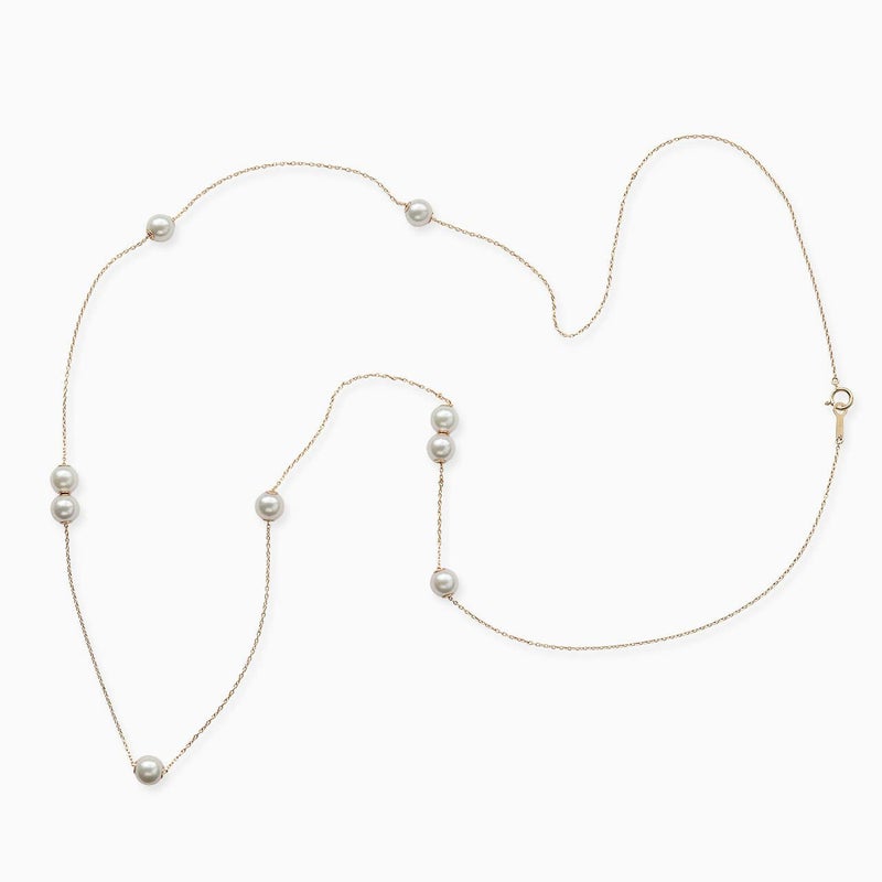 こちらのネックレスは真珠の両穴を活かし、スライド金具を取り付け、珠が可動するステーションネックレスに仕立てました。