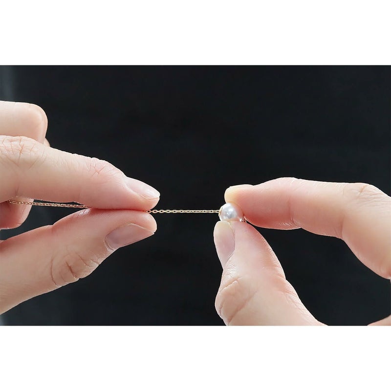 スライド金具を取り付けた真珠は、ネックレスの好きな場所に移動させることができます。