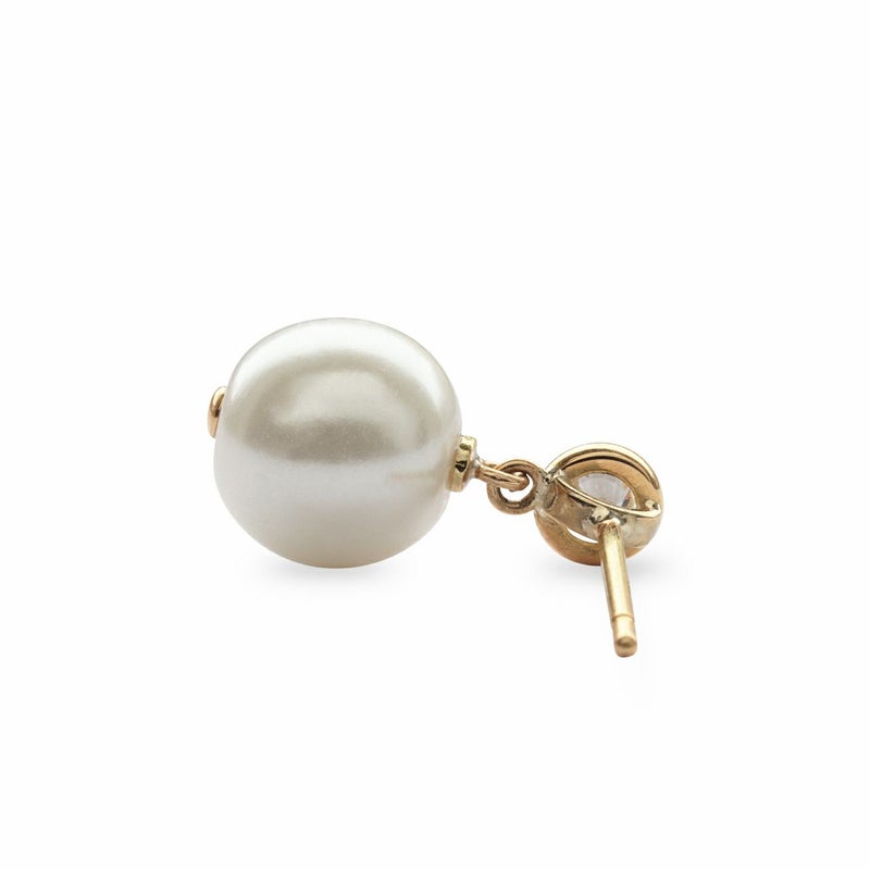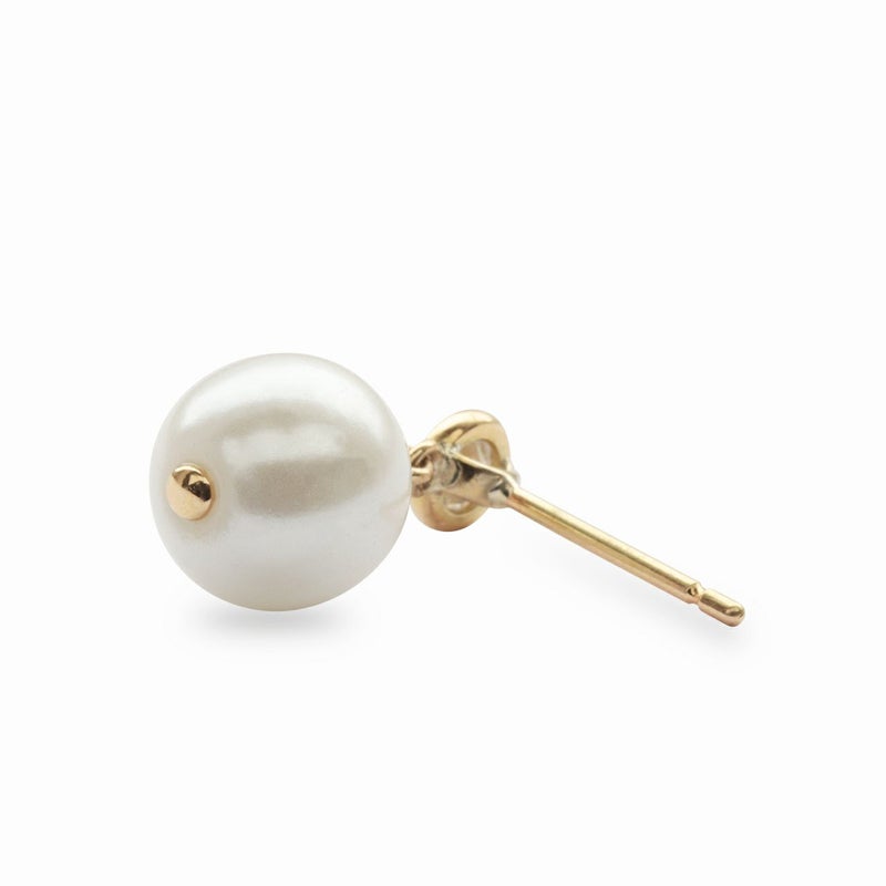 こちらのピアスは真珠の両穴を活かし、上部にダイヤモンドを一粒、下の穴は金具でふさぎ、一体感あるよう仕立てました。